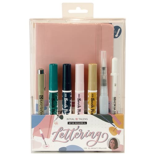 Talens Lettering initiering set (rosa) med flygande älskare, brev anteckningsbok, palett blandningar, vattenbrush, punktafin, gel penna, Ecoline Brush Pen, guide brevbok, steg för steg