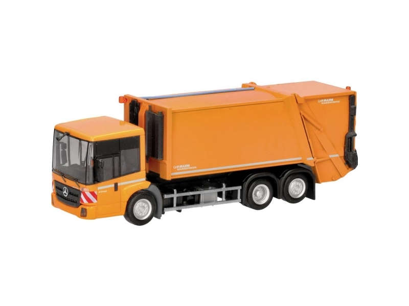 Herpa 319003 H0 Lastbilar Modell Mercedes Benz Econic Press Lastbil Faun Variopress, Kommunal Orange
