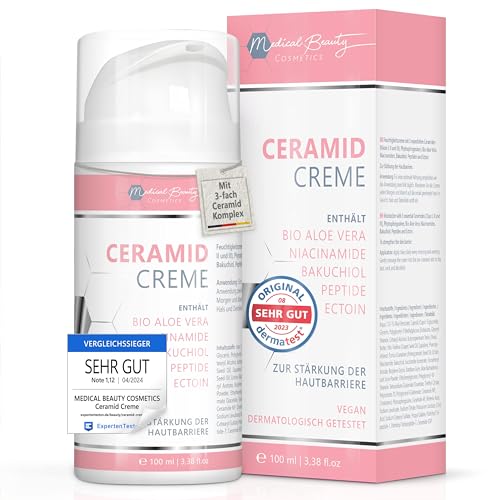 Återfuktande kräm 100 ml med 3 essentiella ceramider – plus ekologisk aloe vera, bakuchiol och ekologisk granatäpplefröolja – Vegansk ansiktsvård för att stärka hudbarriären med ectoin.