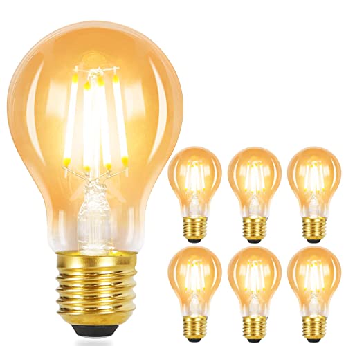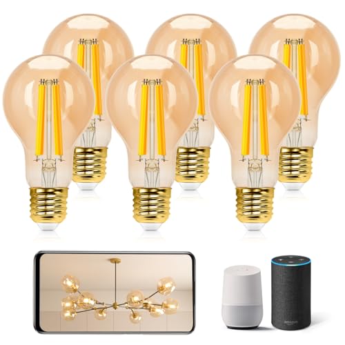 Aigostar Smart Bulbs 6W Wifi-glödlampa E27 Wifi LED-lampa A60 Edison-lampa Dimbar 2700K-6500K Kompatibel med Alexa och Google Assistant, Guld 6 delar