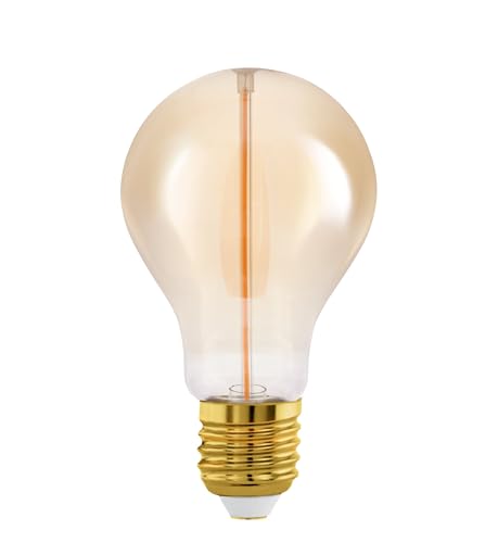 EGLO E27 LED-lampa, stegvist dimbar via strömbrytare, vintagelampa i bärnstensfärgat glas, 2 watt, 100 lumen, varmvit (1 800 K), Edison-lampa A60, diameter 6 cm
