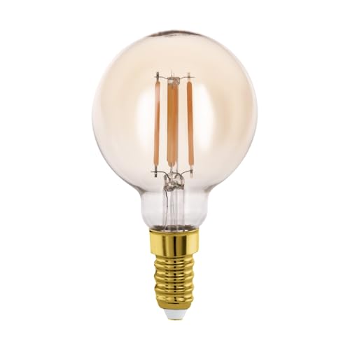 EGLO E14 LED-lampa, bärnstensfärgad vintage lampa, globe glödlampa för retrobelysning, 4 Watt (motsvarar 32 Watt), 350 Lumen, varmvit, 2200k, Edison G60, Ø 6 cm