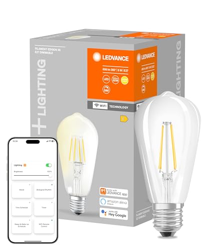 Ledvance Smart LED-lampa med WiFi-teknik, sockel E27, dimbar, varm vit (2700 K), ersätter glödlampor med 60 W, SMART WiFi filament Edison Dimmable, 1-pack SMART+ filament Edison Dimmable