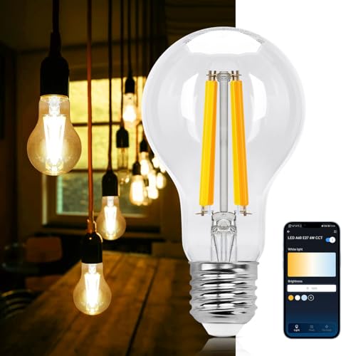 Aigostar - Smart Vintage E27 LED Alexa-lampa 6W 850LM Edison WIFI A60 Dimbar glödlampa 2700-6500K, Kompatibel med Alexa/Google Home. Klar, 1-pack
