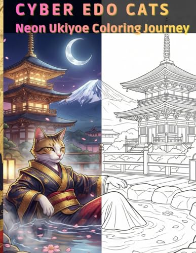 CYBER-EDO CATS: Neon Ukiyoe Coloring Journey: Relax and Color the Spirit of Japan: 50+ Unique Designs for Stress Relief and Mindfulness