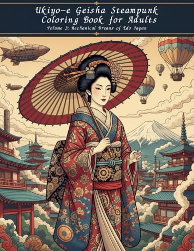 Ukiyo-e Geisha Steampunk Coloring Book for Adults Volume 3: Mechanical Dreams of Edo Japan: A Steampunk-Inspired Adult Coloring Journey into the Mechanical Dreams of Old Japan