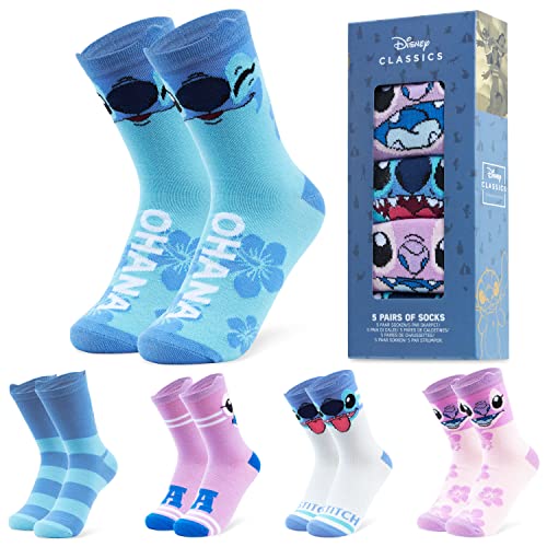 Disney Stitch Socks Women the Mandalorian Mickey Minnie Mouse Princess Eeyore Calf Length Socks For Women Teenagers 5 Pack One Size 3-8 Mjuka stretchiga strumpor Stitch presenter, En storlek, Mång