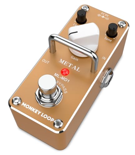 MONKEY LOOP ML-MD1 - Effektpedal för elgitarr - Förvrängningspedal för metall med tonkontroll och förstärkning - Signalkvalitet med True Bypass - Strömförbrukning 5,5 mA (DC 9V)