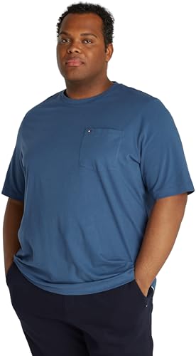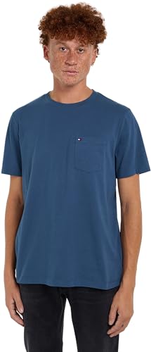 Tommy Hilfiger herrskjorta ärm rund hals t-shirt med bröstficka, Egeiska havet, XXL