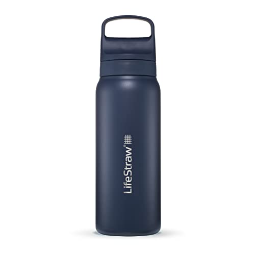 LifeStraw Go Series — Isolerad vattenflaska i rostfritt stål för resor och daglig användning tar bort bakterier, parasiter och mikroplast, förbättrar smaken, 24 oz Egeiska havet