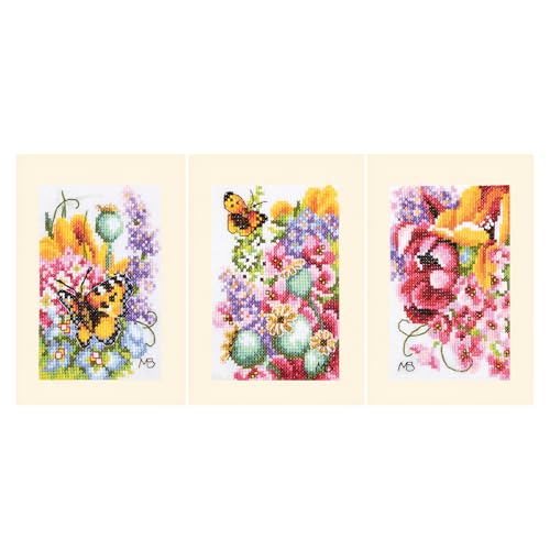 LANARTE räknade korsstygn, broderipaket, gratulationskort för egen design, BLOMENPOWER set om 3, gör-det-själv vykort, vuxna, broderi, hantverk, ca 10,5 x 15 cm broderiset för nybörjare kreativ