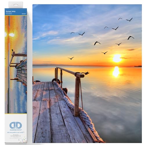 Diamond Dotz DD12-051 Sunset Jetty, ca 71 x 47 cm stor, diamantmålning, målning med diamanter, gnistrande bild för egen design, för barn och vuxna