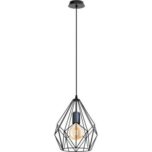 EGLO Carlton Hänglampa, vintage-pendellampa att hänga över matbordet, retrotaklampa av svart metall, E27-sockel, 31 cm i diameter