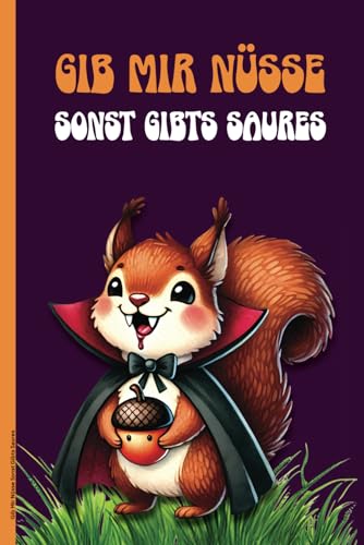 Gib Mir Nüsse Sonst Gibts Saures: Eichhörnchen auf Notizbuch A5 liniert lustiges Halloween Geschenk Notizheft mit Spruch schönes Notiz Buch als Tagebuch mit Tiermotiv kleines Halloweengeschenk