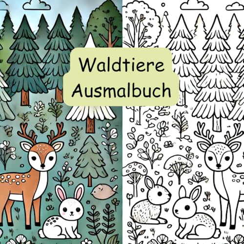 Waldtiere Malbuch: Kreatives Ausmalen für Kinder ab ca. 5 Jahren mit vielen Waldtieren wie Reh, Fuchs, Hase, Eichhörnchen, Wolf, Specht, Hase, Wildschwein