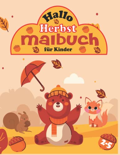 Malbuch Herbst - Der Herbst ist da - Ausmalen - Ideal für Regentage - Für Kinder zwischen 2 und 5 Jahre: Regenschirm, Blätter, Fuchs, Eichhörnchen uvm.