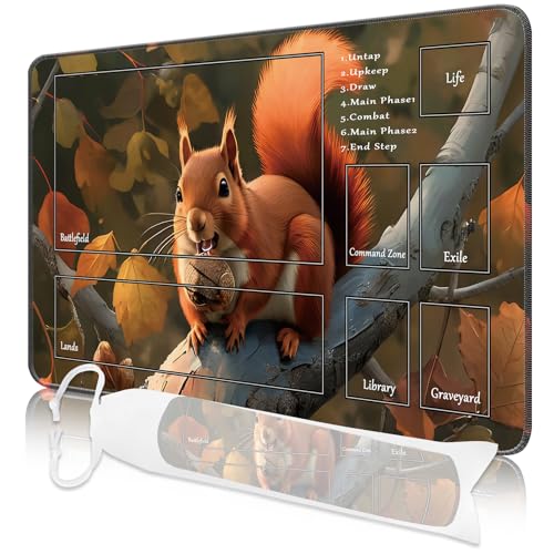 Nkddert MTG lekmatta, 24 x 14 tum TCG kort lekmatta sydda kanter MTG befälhavare spelmatta 3 mm tjock vattentät färgglada stjärnor MTG lekmatta med zoner med förvaringsväska (ekorr)