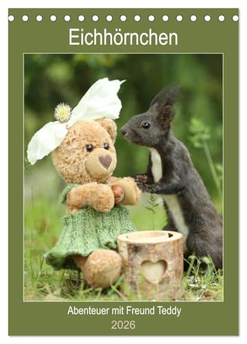 Eichhörnchen - Abenteuer mit Freund Teddy (Tischkalender 2026 DIN A5 hoch), CALVENDO Monatskalender: Eichhörnchenbilder für Herz uns Seele