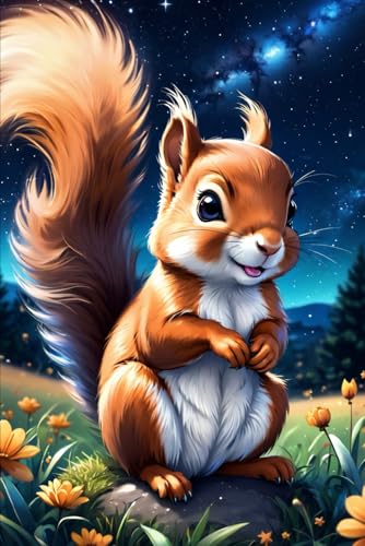 Night Sky Squirrel Notizbuch / A5 / leere nummerierte Seiten: Nachthimmel Eichhörnchen