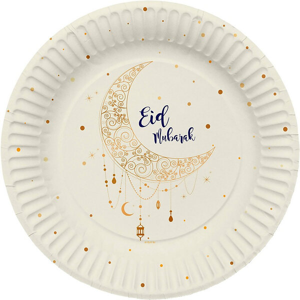 Papperstallrikar Eid Mubarak Vit/Guld 8-pack