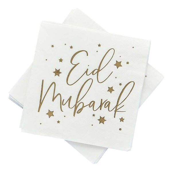 Servetter Eid Mubarak Vit/Guld 16-pack