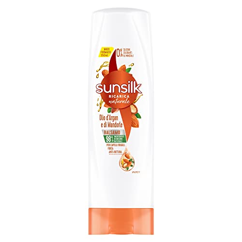 Sunsilk, Argan- och mandelolja-balsam, bräckligt hårbalsam, näringsrik och förstärkande formel, med arganolja och ekologisk mandelolja, silikonfri, 350 ml