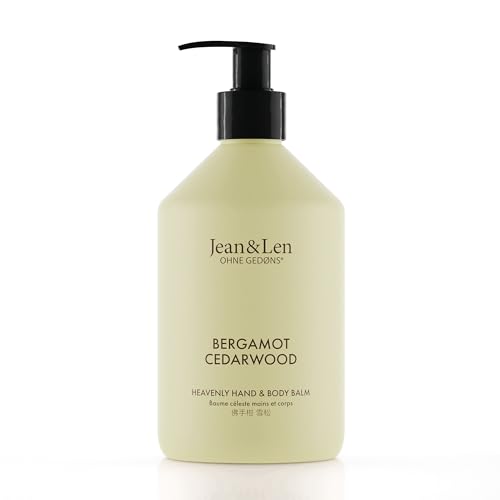 Jean & Len Heavenly Hand & Body Balm Bergamot & Cedarwood, för en väldoftande vårdupplevelse, med ekologisk arganolja och sheasmör, högkvalitativ flaska, utan parabener & silikoner, 500 ml