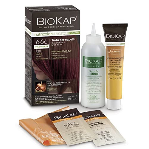 BIOKAP RAPID permanent hårfärg 6,66 rubinröd | ENDAST 10 minuters effekt | Ekologisk arganolja – TricoREPAIR komplex – Vegan | Optimal täckning | Upp till 80% naturliga ingredienser