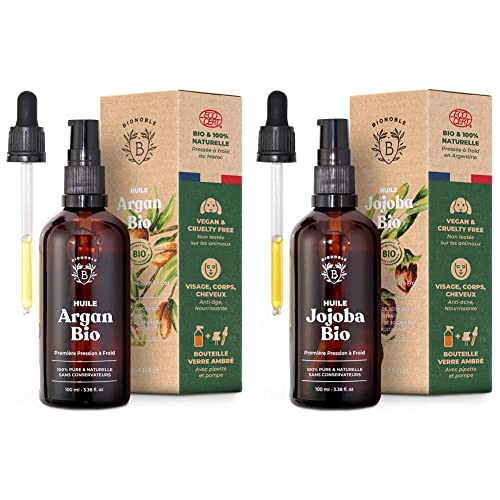 EKOLOGISK ARGANOLJA | 100% Ren, Naturlig & Kallpressad | Glasflaska + Pipett + Pump (100ml) & EKOLOGISK JOJOBAOLJA | 100% Ren, Naturlig & Kallpressad | Glasflaska + Pipett + Pump (100ml)