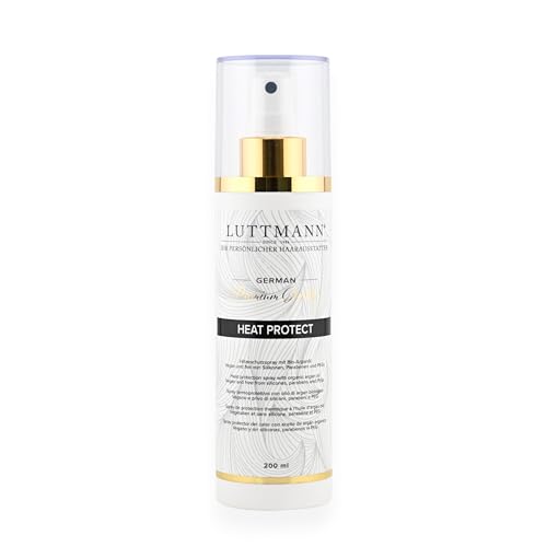 LUTTMAN® Heat Protect Spray 200 ml – Värmeskyddsspray med ekologisk – arganolja för förlängningar, peruker, hårstycken och eget hår – Made in Germany