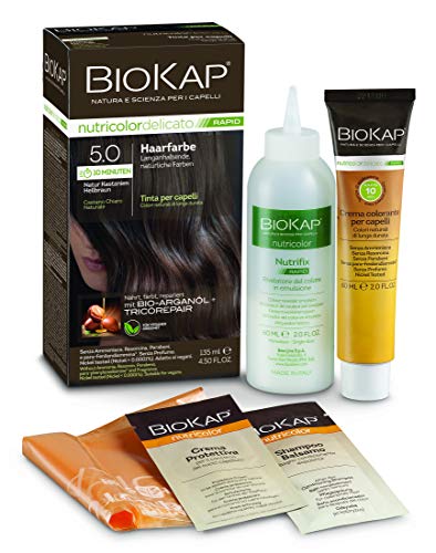 BIOKAP RAPID permanent hårfärg 5,0 naturlig kastanj ljusbrun | ENDAST 10 minuters verkningstid | Ekologisk arganolja – TricoREPAIR komplex – Vegan | Optimal täckning av grått | Upp till 80% naturliga