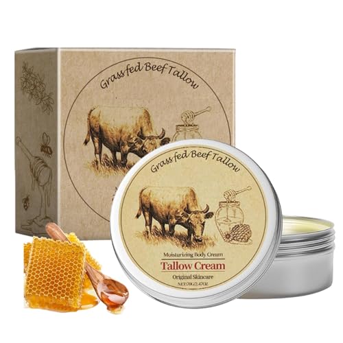 Beef Tallow Skincare | Nötkött talg ekologisk kräm | talg och honungskräm | Beef Tallow Cream av gräs Fed Tallow och vild honung – För ansikte kropp den släta huden återfuktande