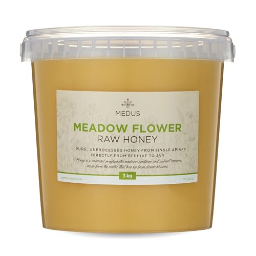 Earthbreath Ängblomma rå honung – 3 kg – ekologisk, ren, opasteuriserad och ofiltrerad – från en enda apiary – naturligt sötningsmedel för matlagning, kaffe, te, juice, drycker, mat