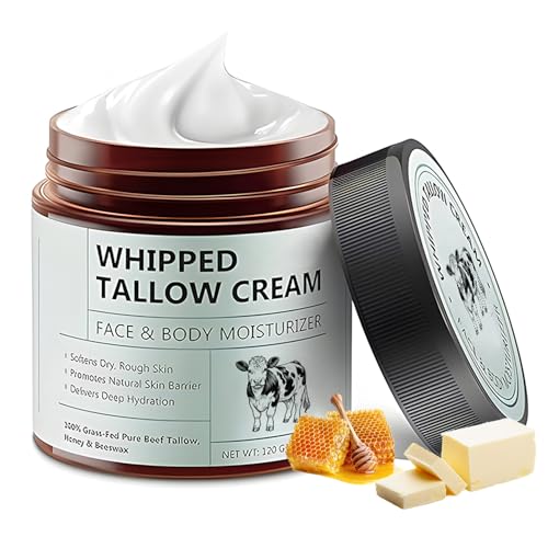 Biff Tallow Creme, ekologisk biff tallow Skincare, gräsfodrad nötkött talgkräm med honung bivax, djup fuktgivande för ansikte och kropp, snabb absorption och inte parfymerad, 120 g