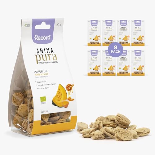 Record Vegetariskt mellanmål ren själ för hundar, besparingsstorlek. Naturliga bakade kex, honung och pumpa, ekologisk hundsnacks, tillverkad i Italien | 8-pack 100 g påsar