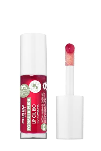 Deborah Milano Ekologisk Lip Oil, ren formel, N.02 Strawberry Rose, ekologisk läppolja, återfuktande, ger näring och skyddar läppar, med jojobaolja, 6 ml