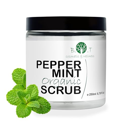 Bästa ORGANIC Peeling 200 g – uppfriskande pepparmynta – 100% epsom bittersalt med jojobaolja, avokadoolja, saffloroljor och ekologisk pepparmynta eterisk olja