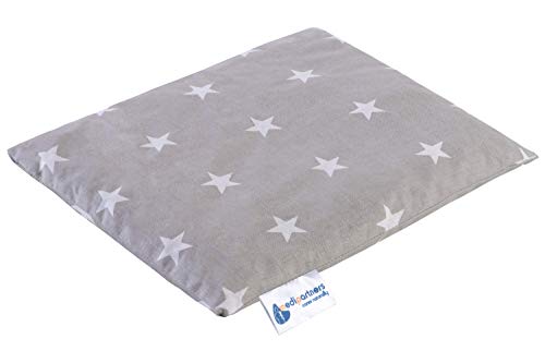 Körsbärskärna kudde värmekudde kornkudde för spädbarn 180 g rund 15 cm ekologisk natur 100% bomull Medi Partners värme kylterapi massageterapi (vita stjärnor med grå)