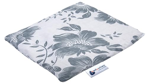 Körsbärskärna kudde stor värmekudde 500 g rektangel 20 x 25 cm ekologisk natur 100% bomull Medi Partners värme kylterapi massageterapi (grå blommor)