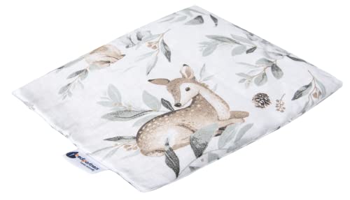 Medi Partners Cherry Pit mikrovågssäker kudde 20x25cm storkornig kudde värmekudde 500g rektangulär 100% bomull ekologisk naturlig massageterapi nacke axel kylterapi (Hjort i bladen)
