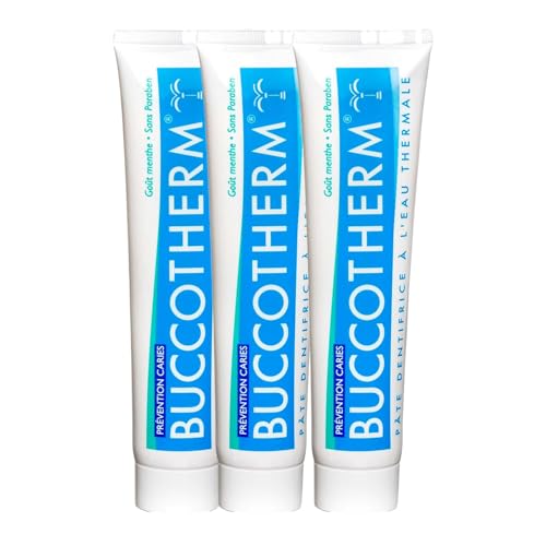 BUCCOTHERM | [Karies förebyggande tandkräm mint smak] | Certifierad ekologisk | lugnar tandköttet | skyddar | förebyggande av karies | 100 % naturliga ingredienser | 3 x 75 ml