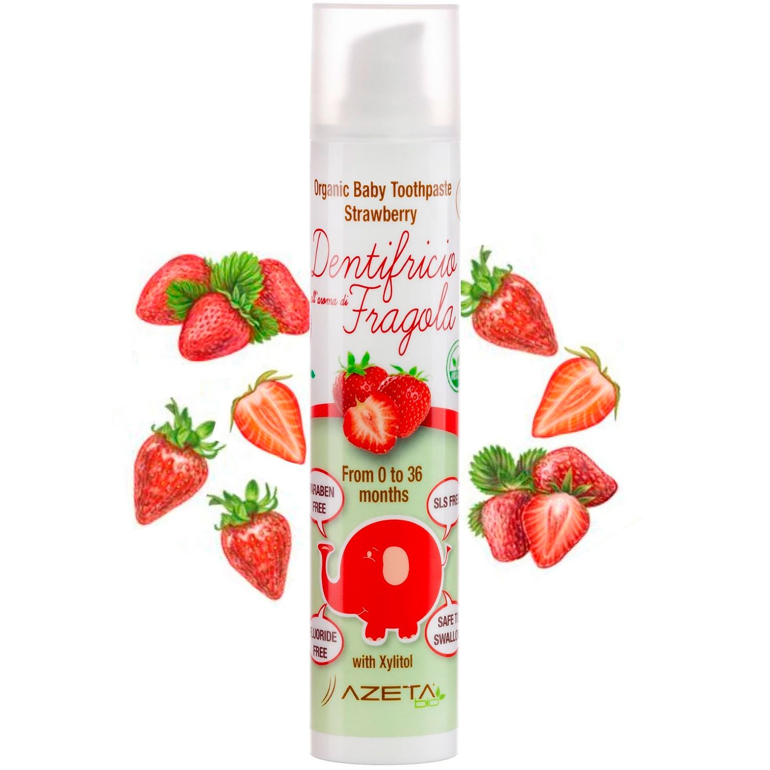 Ekologisk barntandkräm AZETA BIO Strawberry Xylitol tandkräm för bebisar (036 månader) 50 ml