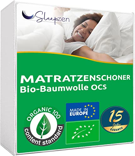 Madrasskydd 200 x 220 cm OCS® och Oeko-TEX® certifierat ekologiskt absorberande bomull, fleece, 180 gr naturlig hälsosam, tyst, tillverkad i Europa, alese form lakan med tjocka flikar - inte vattentät