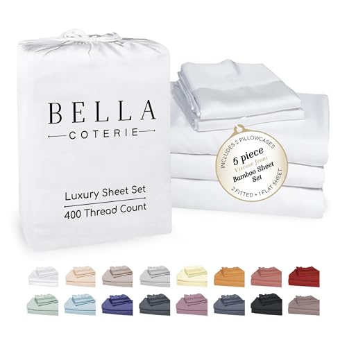 Delat king lakanset | 100% ekologiskt odlad bambuviskos | mjukare än siden, satin och bomull | Kylning för de som sover varmt | 5 – 45 cm extra djupa fickmonterade lakan, lakan, 2 örngott [vit]