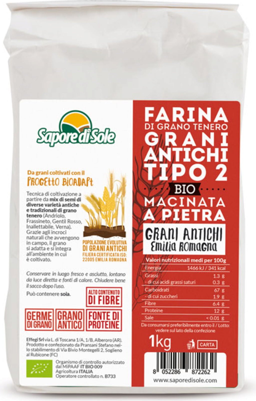 Sapore di Sole Ekologiskt Mjöl Gjort av Gamla Spannmål - Romagna typ 2 - 1 kg