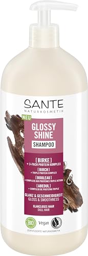 SANTE Naturkosmetik glansig glans schampo ekologiskt björkblad extrakt 3-faldigt proteinkomplex, vegansk och fuktgivande hårvård för mer glans och jämnhet, med delikat kokosdoft, 950 ml