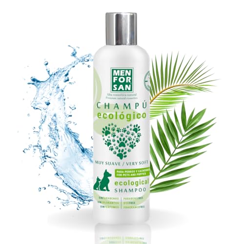 MENFORSAN Mycket milt ekologiskt schampo för hundar och valpar, med 100 procent biologiskt nedbrytbara ingredienser, parfymfri, transparent, 1 l format
