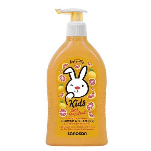 sanosan 2-i-1 dusch & schampo grapefrukt för barn och baby 400 ml – duschgel barn och barnschampo med ekologiskt olivextrakt och mjölkprotein – barnschampo, duschbad barn