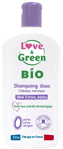 Love & Green Mjukt schampo, certifierat ekologiskt utan sulfatparfym, bebisbarn vuxen, 500 ml