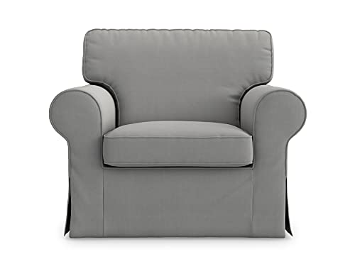 MASTERS OF COVERS Kompatibelt Utbytesöverdrag för IKEA Ektorp Fåtölj – Fåtöljöverdrag i bomull, handgjord 104 x 88 x 88 cm (Grå)